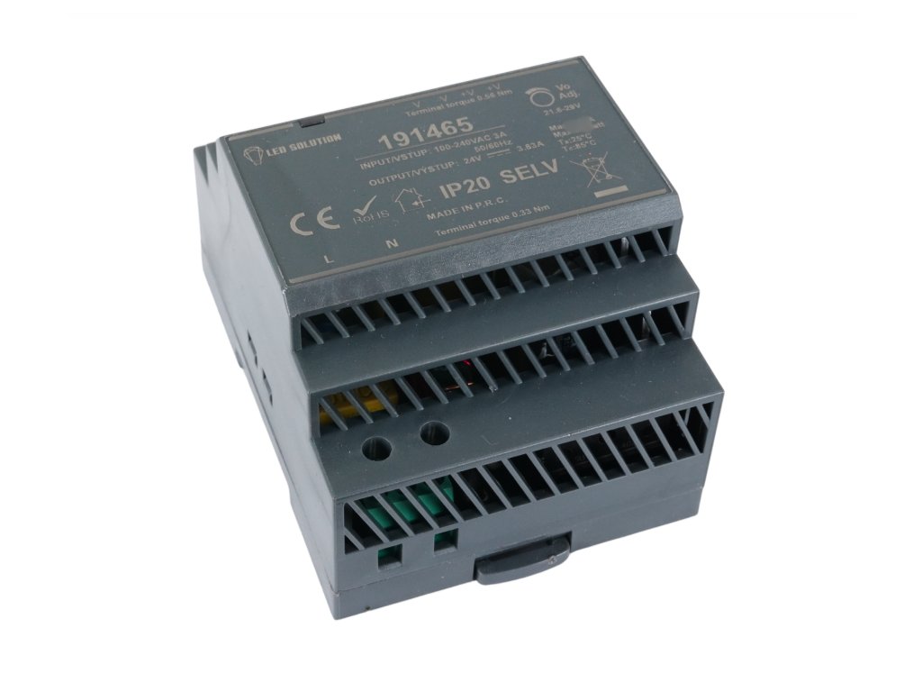 LED elektronikus kapcsolóüzemű tápegység LED szalagokhoz 100W teljesítmény beltéri használatra. A kialakítás lehetővé teszi a DIN sínre történő rögzítést közvetlenül az elosztószekrénybe. Az egység hővédelemmel, rövidzárlat elleni védelemmel és túlterhelés elleni védelemmel van felszerelve, és lehetőséget kínál a kimeneti feszültség manuális finomhangolására ±10%-os tartományban.