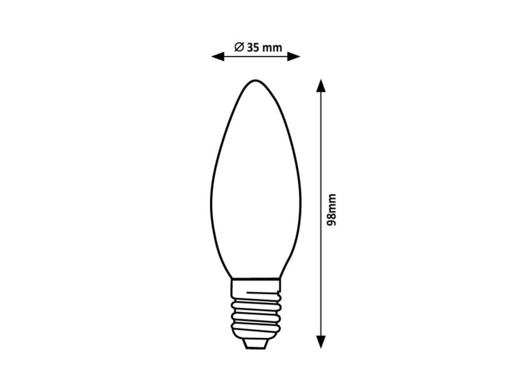 LED filament retro izzó C35 formában, 4 W teljesítményű és 470 lumen fényáramot biztosít, ami ideálissá teszi kellemes belső világításhoz, vagy dizájnos kiegészítőként lámpákhoz, csillárokhoz és más dekoratív világítótestekhez. 360°-os sugárzási szögének köszönhetően egyenletesen oszlatja el a fényt az egész helyiségben. E14-es foglalattal van felszerelve, amely minden, ezzel a foglalattal rendelkező általános lámpatestben gond nélkül használható.