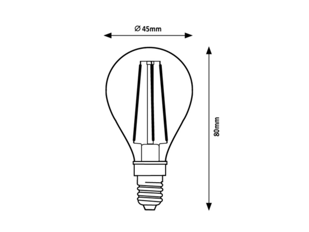 LED filament retro izzó G45 formában, 6 W teljesítményű és 625 lumen fényáramot biztosít, így ideális kellemes belső világításhoz, vagy dizájnelemként lámpákba, csillárokba és más dekoratív világítótestekbe. 360°-os sugárzási szögének köszönhetően egyenletesen oszlatja el a fényt az egész helyiségben. E14-es foglalattal van felszerelve, amely minden, ezzel a foglalattal rendelkező általános lámpatestben gond nélkül használható.