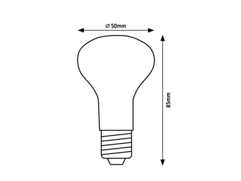 LED filament retro izzó R50 formában 4 W teljesítményű, és 400 lumen fényáramot biztosít, ami ideálissá teszi kellemes beltéri világításhoz, vagy dizájnos kiegészítőként lámpákba, csillárokba és más dekoratív világítótestekbe. 300°-os sugárzási szögének köszönhetően egyenletesen szórja a fényt az egész helyiségben. E14-es foglalattal van felszerelve, amely minden, ezzel a foglalattal rendelkező általános lámpatestben gond nélkül használható.