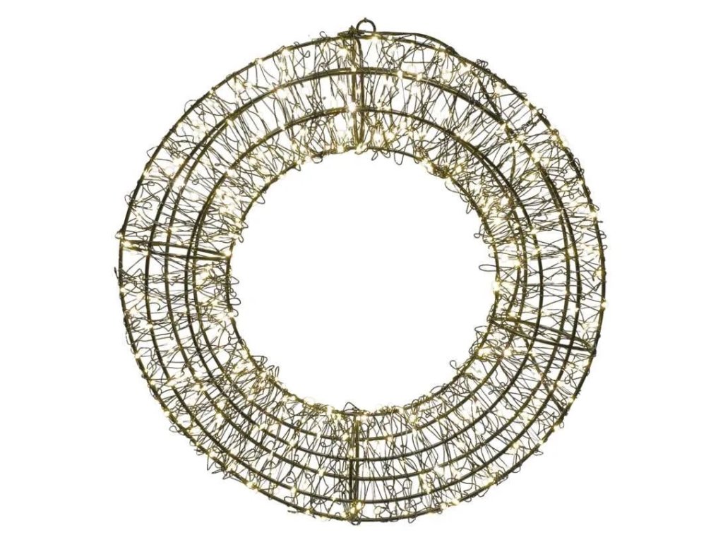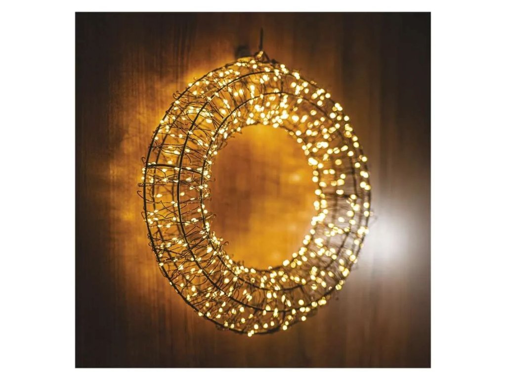 Az elegáns, fémvázas világító koszorú azonnal kellemes ünnepi hangulatot varázsolhat beltéren és kültéren egyaránt. A 38 cm átmérőjű szerkezet sűrűn van átfűzve 480 meleg fehér LED izzóval, amelyek egyenletes és hatékony megvilágítást biztosítanak a teljes kerületen. Az időtlen kialakításnak köszönhetően a koszorú modern kiegészítőként mutat ajtón, falon, ház homlokzatán, de akár asztalon vagy polcon is elhelyezhető.
