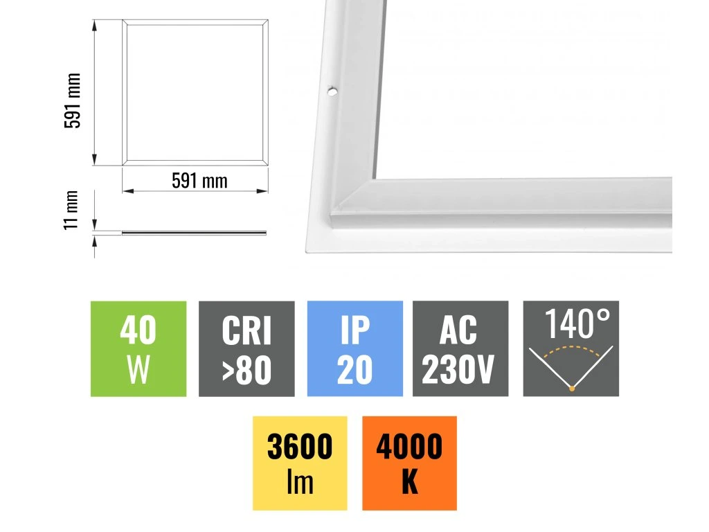 40W-os LED keret 90lm/W hatékonysággal kiváló áron. Alkalmas a hagyományos fénycsövek helyettesítésére, ahol több mint 50%-os villamosenergia-megtakarítást eredményez. Könnyen beilleszthető kazettás mennyezetekbe
