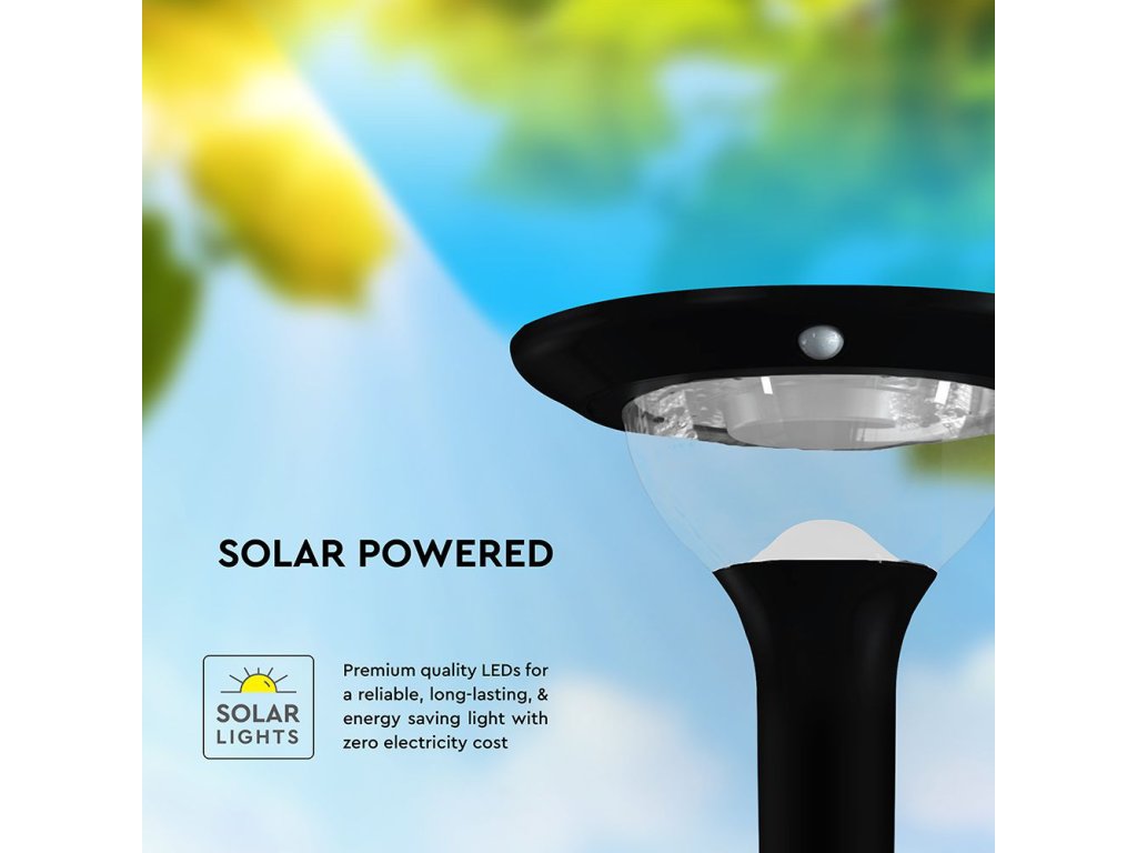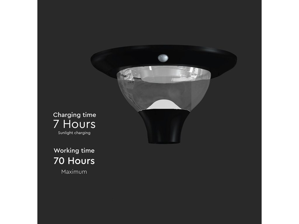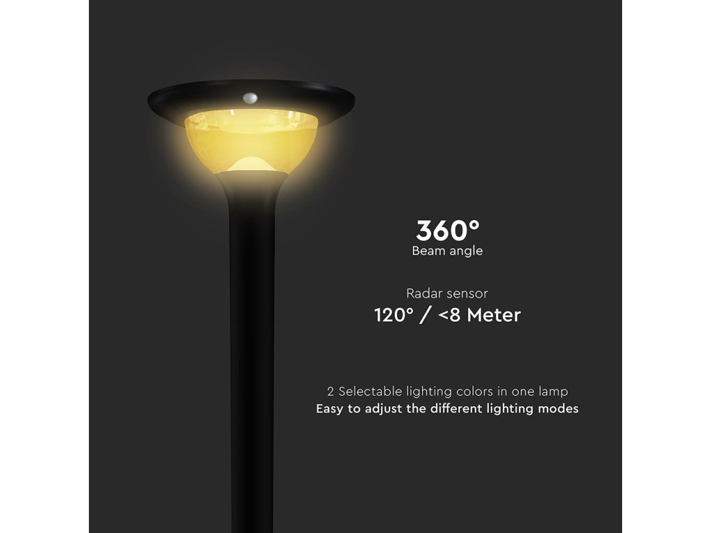 A mozgásérzékelővel ellátott napelemes LED kandeláber energiatakarékos és praktikus megoldást kínál kerti utak, parkok, udvarok vagy kocsibejárók megvilágítására anélkül, hogy elektromos hálózatra kellene csatlakoztatni. A 8,5 W teljesítményű monokristályos napelem biztosítja a minőségi 3,2 V / 12 000 mAh LiFePO₄ akkumulátor hatékony töltését, amely az üzemmódtól és a napsugárzás intenzitásától függően akár 70 órás üzemidőt tesz lehetővé. A 15 W teljesítményű és 2200 lumen fényáramú lámpatest megbízhatóan megvilágít egy legfeljebb 80 m²-es területet, így tiszta és egyenletes fényt biztosít a kültéri területeken való biztonságos mozgáshoz.