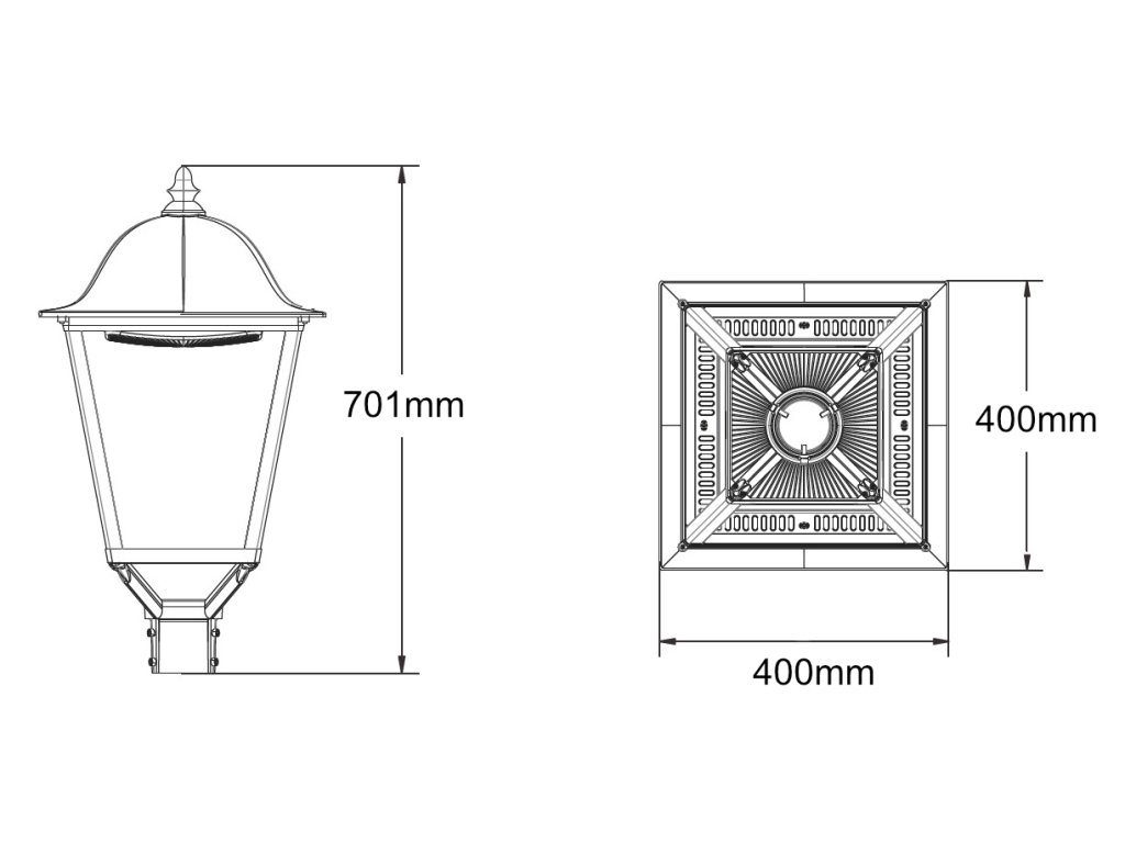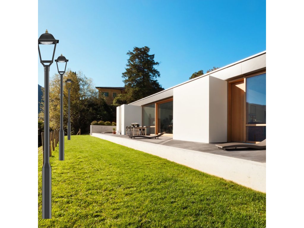 A lámpatest közvetlenül a 80 mm átmérőjű oszlopokra szerelhető, ami gyors és egyszerű telepítést tesz lehetővé. Az elegáns design emellett kiemeli a környező környezet megjelenését, és hozzájárul a köz- és magánterek esztétikai megjelenéséhez.