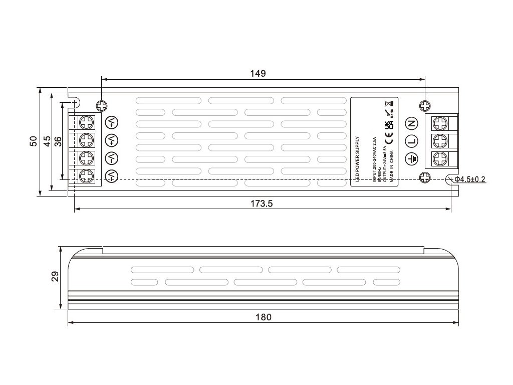 A 200W teljesítményű LED elektronikus kapcsolóüzemű tápegység (transzformátor) alacsony feszültségű LED termékek beltéri táplálására szolgál. Különösen alkalmas LED szalagokhoz, LED izzókhoz és egyéb, 12V-os tápellátású LED világításhoz.