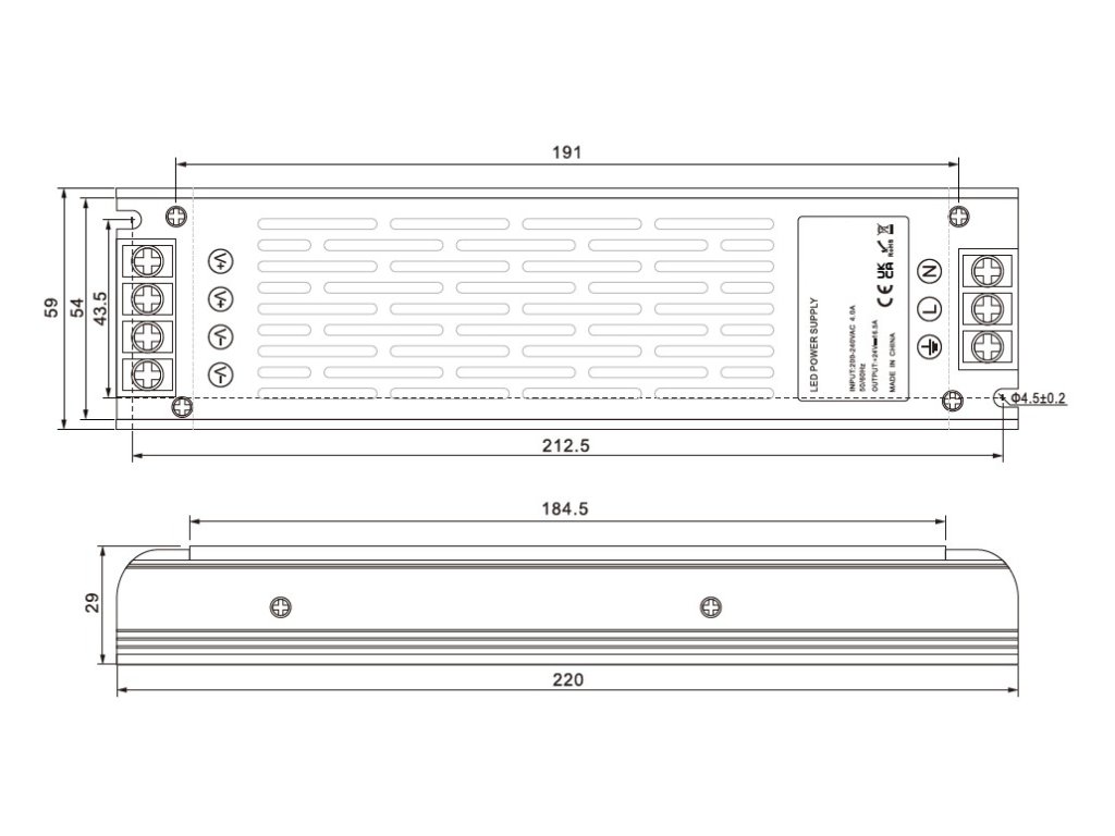 | Méretek | 220 x 59 x 29 mm |