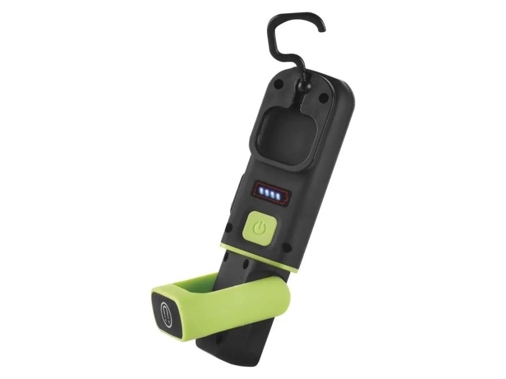 A praktikus, újratölthető lámpa nagy teljesítményű COB és SMD LED világítással nagyszerű segítőtárs a háztartási javításokhoz, a műhelyben végzett munkához és a kempingezéshez. A 330 lm maximális fényáramnak és a akár 45 méteres hatótávolságnak köszönhetően elegendő fényt biztosít a nagyobb igénybevételt jelentő körülményekhez is.