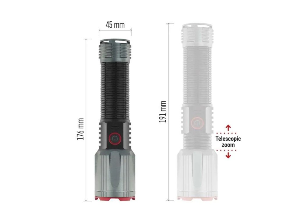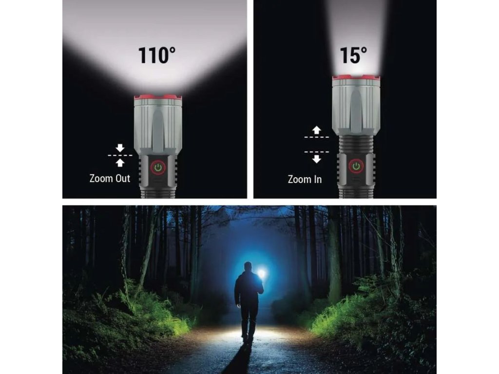 A fókusz a fénycsóva szélességének beállítási lehetőségével lehetővé teszi, hogy kiválaszd, széles szórást szeretnél a környezet megvilágításához, vagy keskeny sugarat a maximális hatótávolság eléréséhez. A praktikus hurok megkönnyíti a hordozást és a használatot.