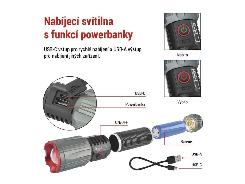 A töltést egy beépített Li-Ion akkumulátor biztosítja, amely a modern USB-C csatlakozón keresztül tölthető. Nem hiányzik a LED-es töltöttségjelző sem, amely biztosítja, hogy mindig elegendő energiával rendelkezz. Az IP43 szabvány szerinti vízállóságnak és az ütésállóságnak köszönhetően a rosszabb időjárást és a nehezebb körülményeket is kibírja.