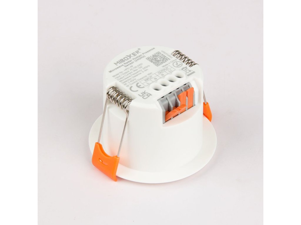 A Mi-Light MiBoxer RF mozgásérzékelő és jelenlét-érzékelő egy beépíthető szenzor, amely otthoni és kereskedelmi területeken az automatikus világításvezérlésre szolgál. A fejlett 24 GHz-es mikrohullámú radar technológiának köszönhetően nemcsak a szokásos mozgást képes felismerni, hanem az emberi jelenlét apró jeleit is, mint például a légzés vagy a test finom mozgásai. A világítás így addig marad bekapcsolva, amíg valaki a szobában tartózkodik, és automatikusan kikapcsol, amint elhagyja a helyiséget. Ez maximális kényelmet és jelentős energiamegtakarítást eredményez.