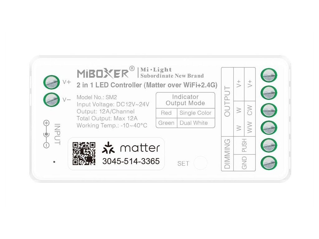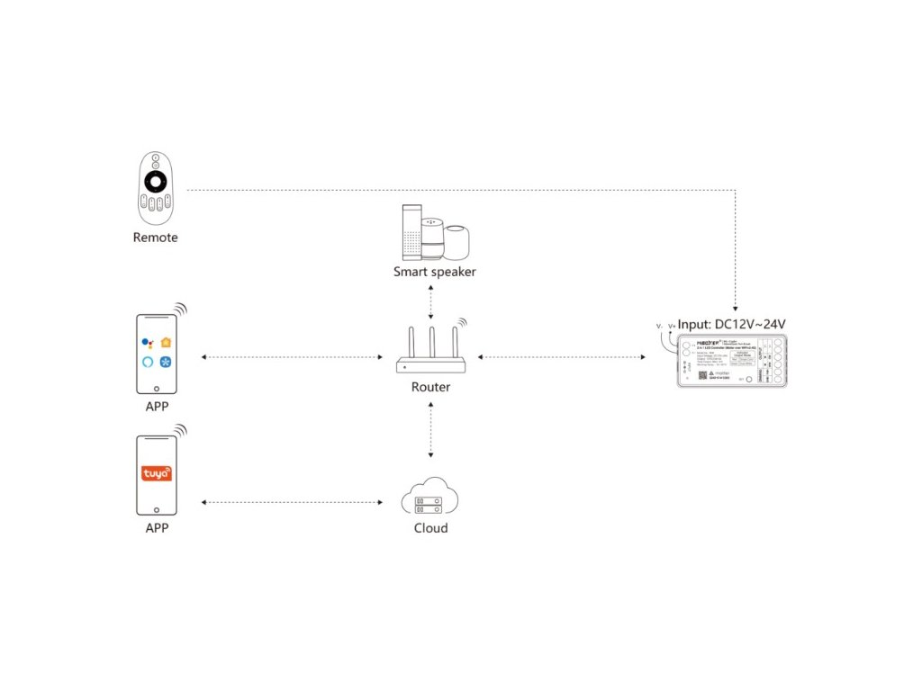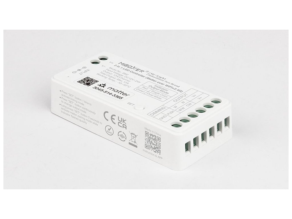 Vevő a Mi-Light / MiBoxer sorozatú LED termékekhez, egyszínű és CCT LED szalagok vezérlésére alkalmas okos világítási rendszerekben. A vevő a tápegység és a LED szalag közé csatlakozik, és lehetővé teszi a be- és kikapcsolást, a fokozatmentes fényerő-szabályozást, valamint a CCT LED szalagok esetében a fehér színhőmérsékletének szabályozását.