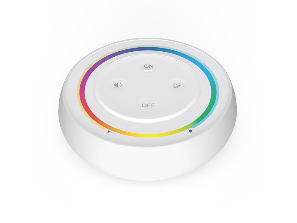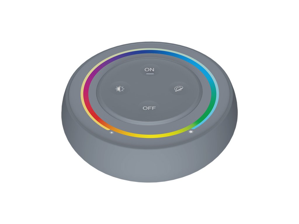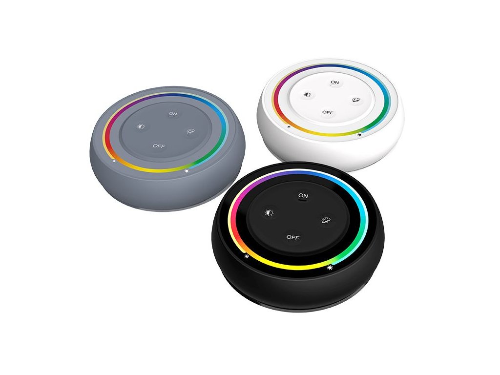 A vezérlés a vezérlő forgatógombján történik, amelyen érintéssel tetszőleges színt és hőmérsékletet állíthat be. A BE / KI gombok segítségével a vezérlőt BE- / KIKAPCSOLHATJA. A nappal jelölt gombbal a fényességet és a fény telítettségét állítja be. A panelek gombbal a színhőmérsékletet állítja be.