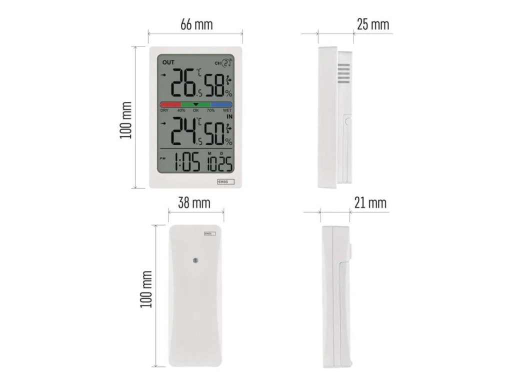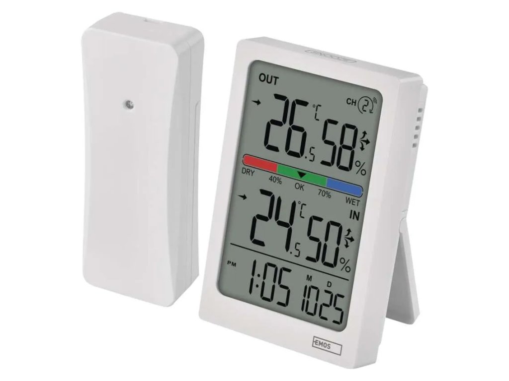 A beltéri és kültéri hőmérséklet és páratartalom áttekintését a digitális vezeték nélküli hőmérő E0558W áttekinthető kijelzővel biztosítja, amely minden fontos információt egy helyen megjelenít. A külső érzékelőnek köszönhetően a kültéri körülmények akár 100 méteres távolságig figyelhetők szabad téren, míg maga az egység beltéri értékeket mér. Az aktuális adatokon kívül a hőmérséklet és páratartalom alakulásának trendjét is megjeleníti, így könnyen nyomon követhető, hogyan változnak a körülmények az idő múlásával.