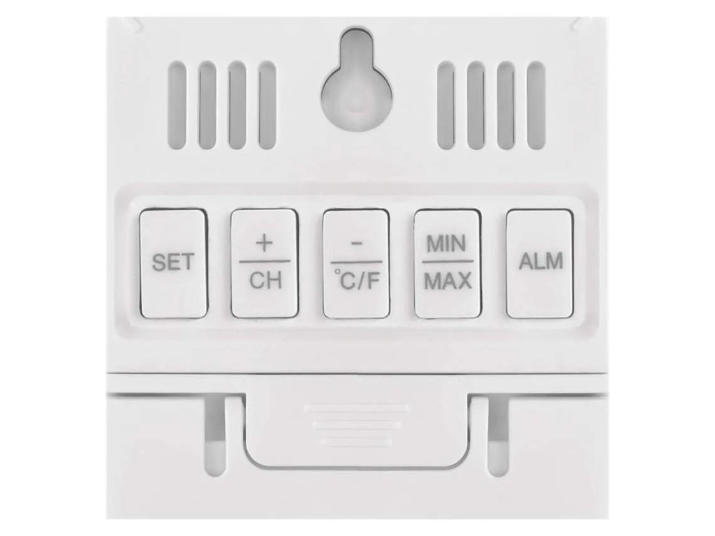 A készülék akár 3 vezeték nélküli érzékelő csatlakoztatását is támogatja, így egyszerre több helyen is figyelhető a hőmérséklet és a páratartalom, például a garázsban, pincében vagy a kertben. Maga a hőmérő két darab AAA ceruzaelemmel működik, míg az érzékelő két darab AA ceruzaelemet használ, az elemek nem részei a csomagnak.