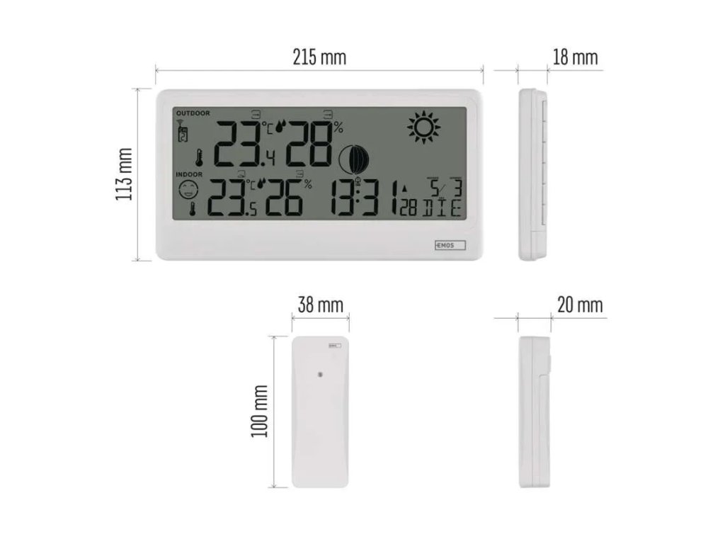 A rádiójel vezérelt DCF óra pontos időt garantál, míg az ébresztő ismétlődő ébresztési funkcióval megkönnyíti a mindennapi felkelést. A naptár több nyelven is elérhető, beleértve a csehet is. A meteoállomás könnyen felállítható az asztalra vagy felakasztható a falra.