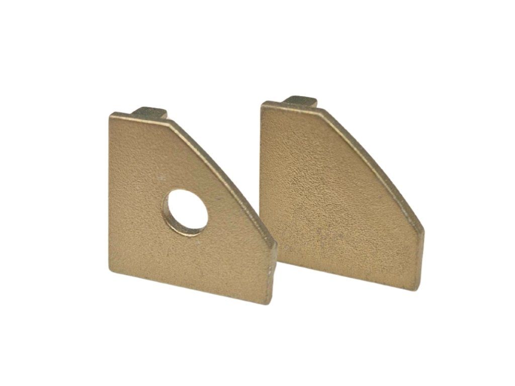 Műanyag végzáró R7 champagne profilhoz. 2 változatot kínálunk - egy lyukkal a kábel számára és egy teljes végzáró sapkával.