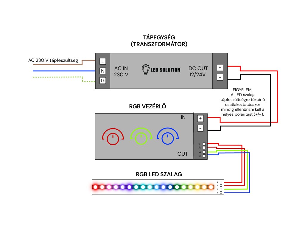 Ezt a modellt 12V-os egyenáramra tervezték, és megfelelő 12V-os tápegységet és egy 12V-os RGB-vezérlőt igényel, amely nem tartozék. A 12V-os tápegységnek köszönhetően ez a NEON ugyanúgy vezérelhető, mint bármely más 12V-os RGB LED szalag. Ez a NEON modell nem rendelkezik kétoldalas ragasztószalaggal, azonban a NEON-t például egy konzollal rögzítheti. A LED NEON vágásakor javasoljuk, hogy a NEON megfelelő végződéséhez megfelelő hegyet vásároljon.