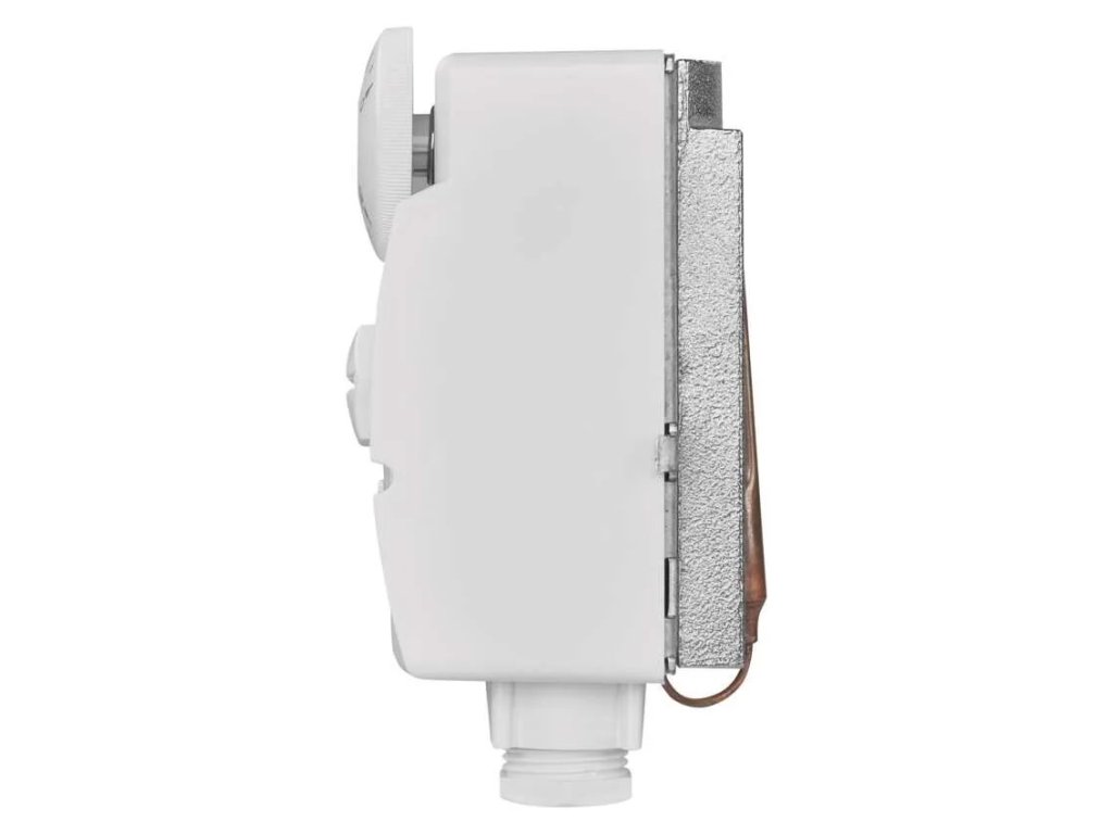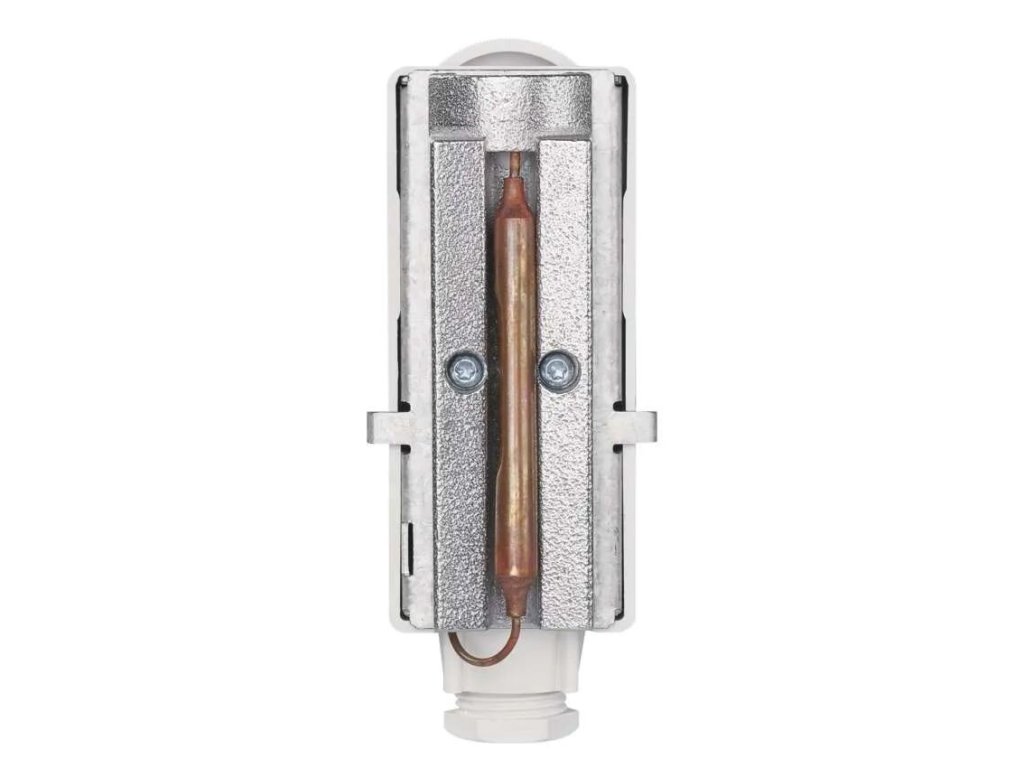Felületszerelt termosztát felületi szereléshez. Érzékeli a melegvíztartályokban vagy fűtési rendszerekben lévő víz hőmérsékletét. Lehetővé teszi a hőmérséklet-szabályozást, a hőmérsékleti határértékek felügyeletét és a hőmérséklet-csökkenés funkciót. Egyszerű rögzítés feszítőrugóval.