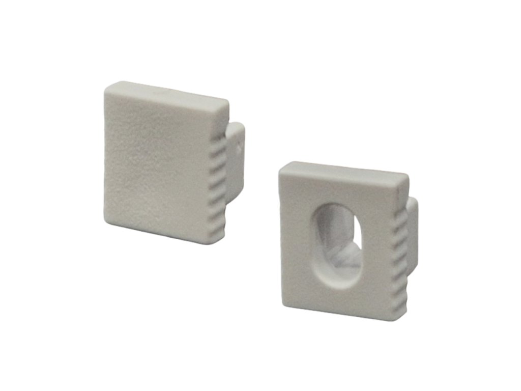 Műanyag végzáró a SLIM N11 falprofilhoz. 2 változatot kínálunk - egy lyukkal a kábel számára és egy teljes végzáró sapkával.