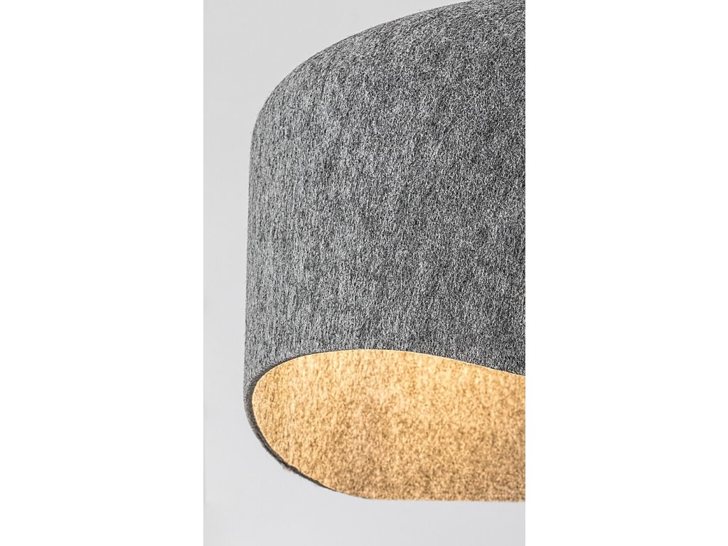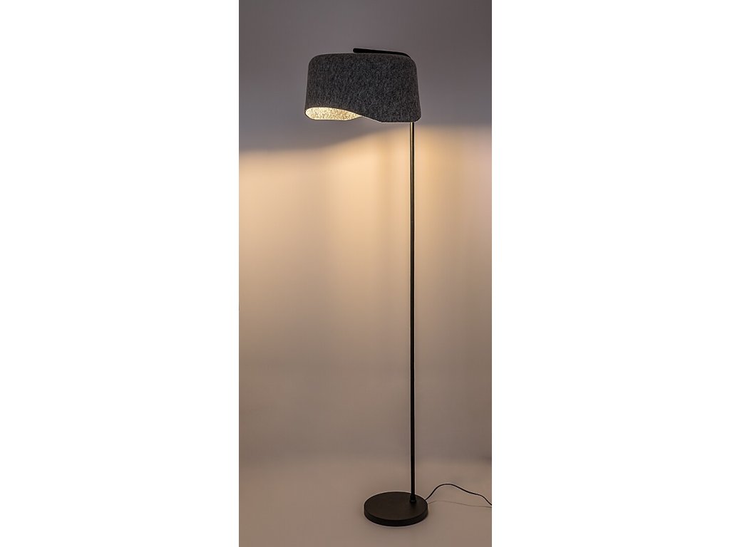 A Farelia állólámpa a modern dizájn, a természetes megjelenés és a hangulatos hangulat eredeti kombinációját képviseli. A karcsú, fekete fémszerkezetet egy jellegzetes szürke filcernyő egészíti ki, amelynek szabálytalan formája jellegzetes és lágy megjelenést kölcsönöz a lámpának. A filc anyag nemcsak vizuálisan lágyítja az összbenyomást, hanem hozzájárul a fény kellemes szétszóródásához, és nyugodt, meleg hangulatot teremt a belső térben. Az újrahasznosított anyagok felhasználásának köszönhetően a lámpaernyő környezetbarát választás is. A lámpa természetesen illik a nappaliba, a hálószobába és a dolgozószobába, ahol kiegészítő vagy hangulatvilágításként szolgálhat.