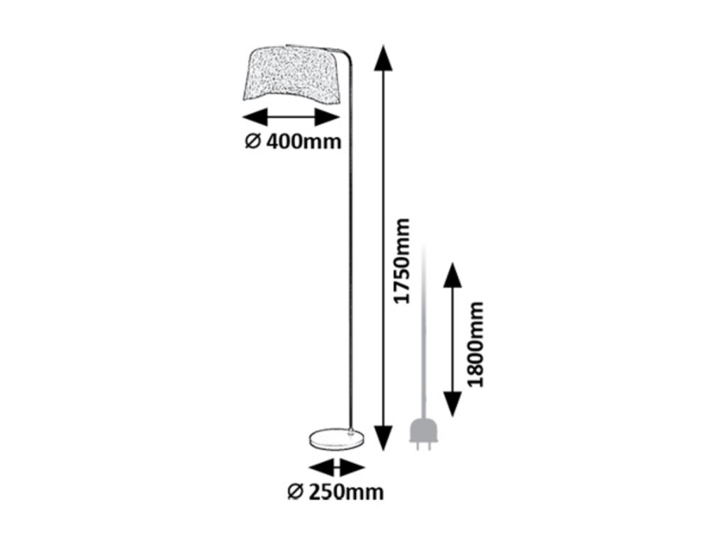 Az állólámpa teljes magassága körülbelül 1750 mm, a maximális magasság a tápkábellel együtt 1,8 m. A lámpabúra átmérője 400 mm, a stabil, kerek talp pedig 250 mm átmérőjű, ami biztosítja, hogy a lámpa szilárdan és biztonságosan álljon a padlón. A Farelia állólámpa ideális választás azok számára, akik lágy fénnyel, kellemes anyagokkal és időtlen karakterrel rendelkező dizájner lámpát keresnek.