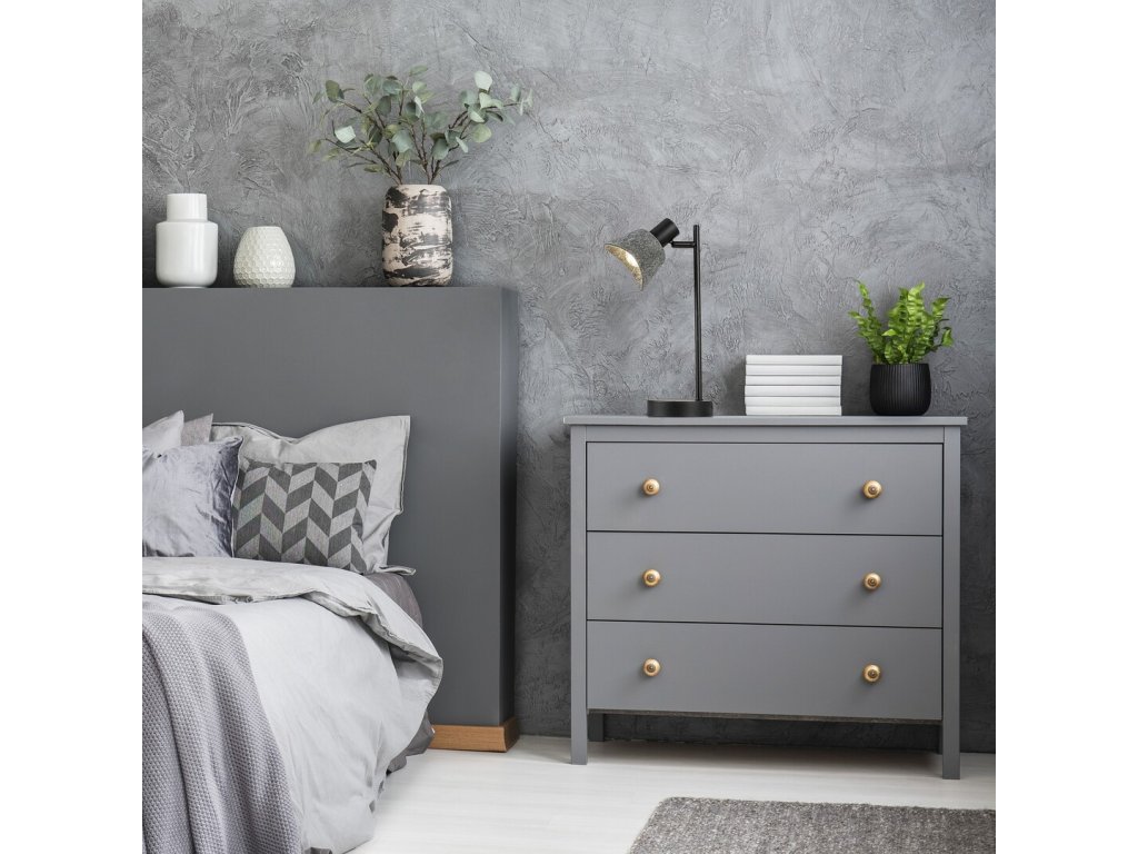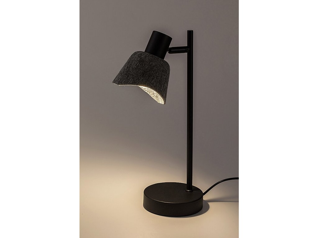 A Farelia asztali lámpa eredeti dizájnjával és kellemes anyagkombinációjával tűnik ki, amely nyugodt és otthonos légkört varázsol a belső térbe. Jellemző eleme a harang alakú, környezetbarát újrahasznosított anyagból készült szürke filc lámpaernyő. A filc puha felülete meleg és természetes hatást kelt, míg a fekete fémváz modern kontrasztot kölcsönöz a lámpának, és biztosítja a stabilitást a mindennapi használat során.