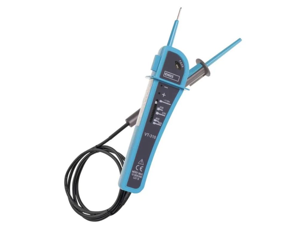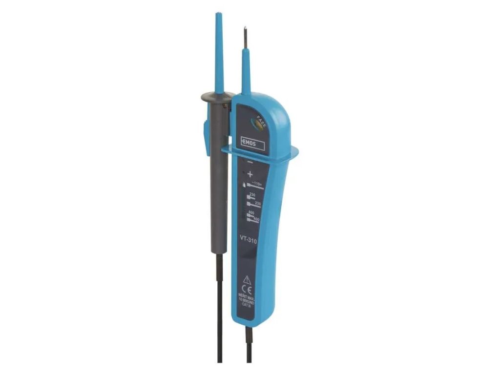 A VT-310 feszültségvizsgáló egy praktikus és könnyen kezelhető eszköz az elektromos áramkörökben a feszültség gyors ellenőrzésére. Alkalmas feszültség alatt álló és nem álló részek ellenőrzésére, így azonnal láthatja, hogy az adott berendezéssel biztonságosan lehet-e dolgozni.